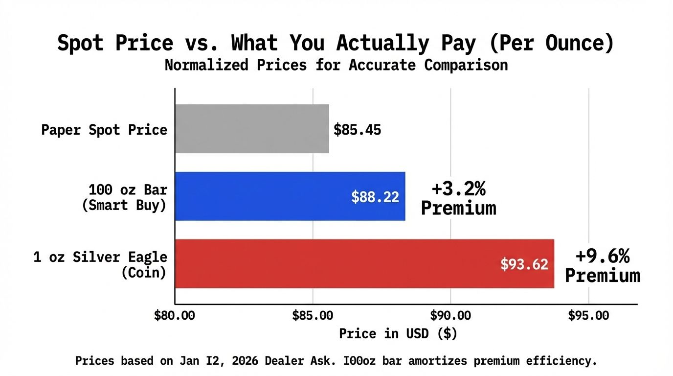 6) Spread Watch (real prices): what it costs to buy actual silver today